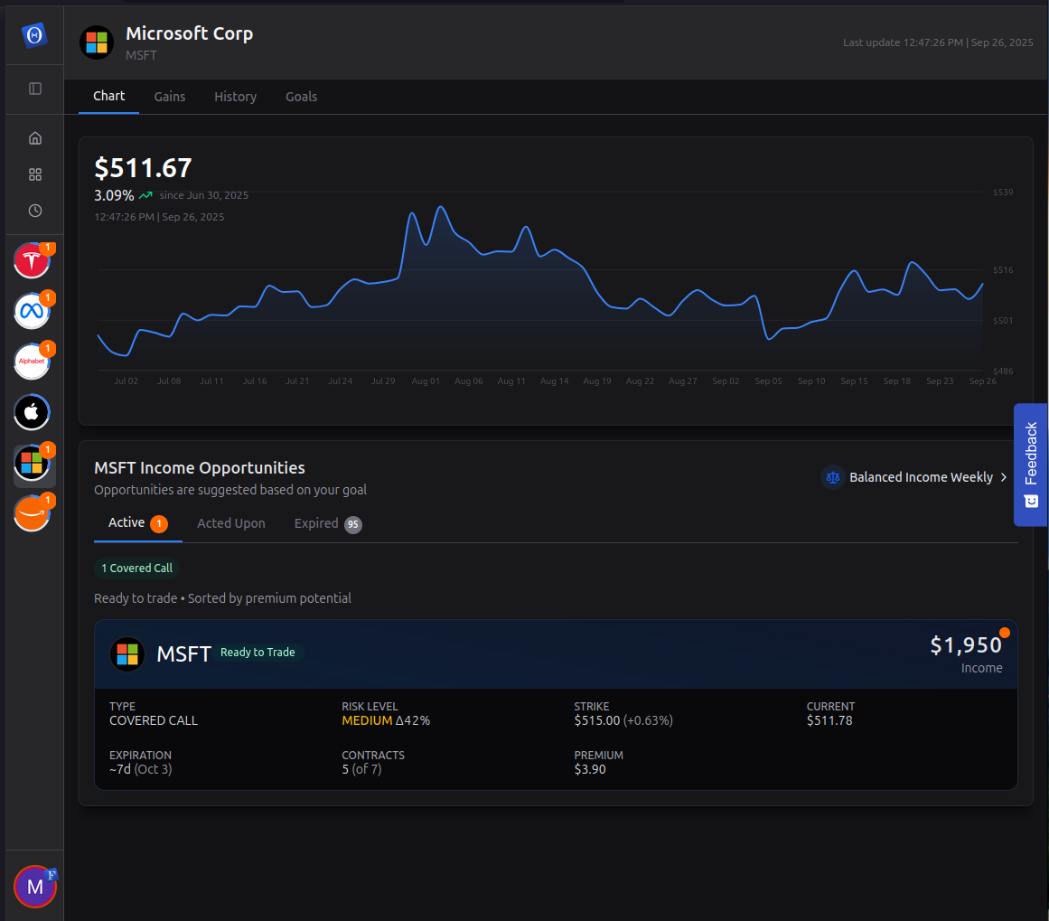 - New opportunity alerts: Get notified when market conditions create attractive covered call opportunities